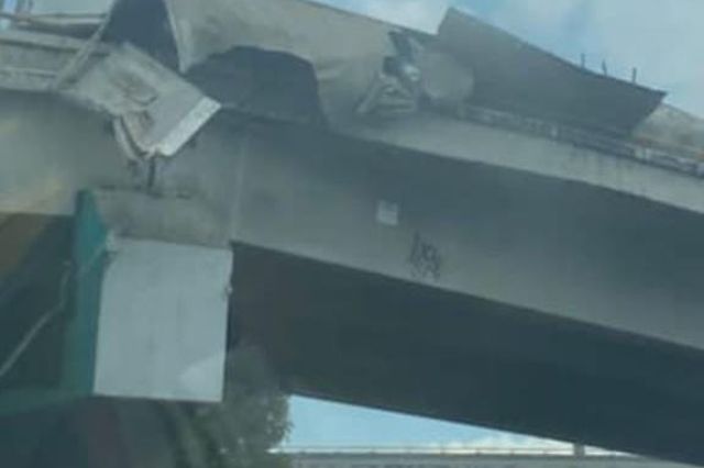 Puebla, Pue. - Hace unos minutos, un camión pesado cargado con rollos de tela estuvo a punto de caer del puente ubicado en el Periférico, a la altura de la salida hacia la carretera federal a Tehuacán.