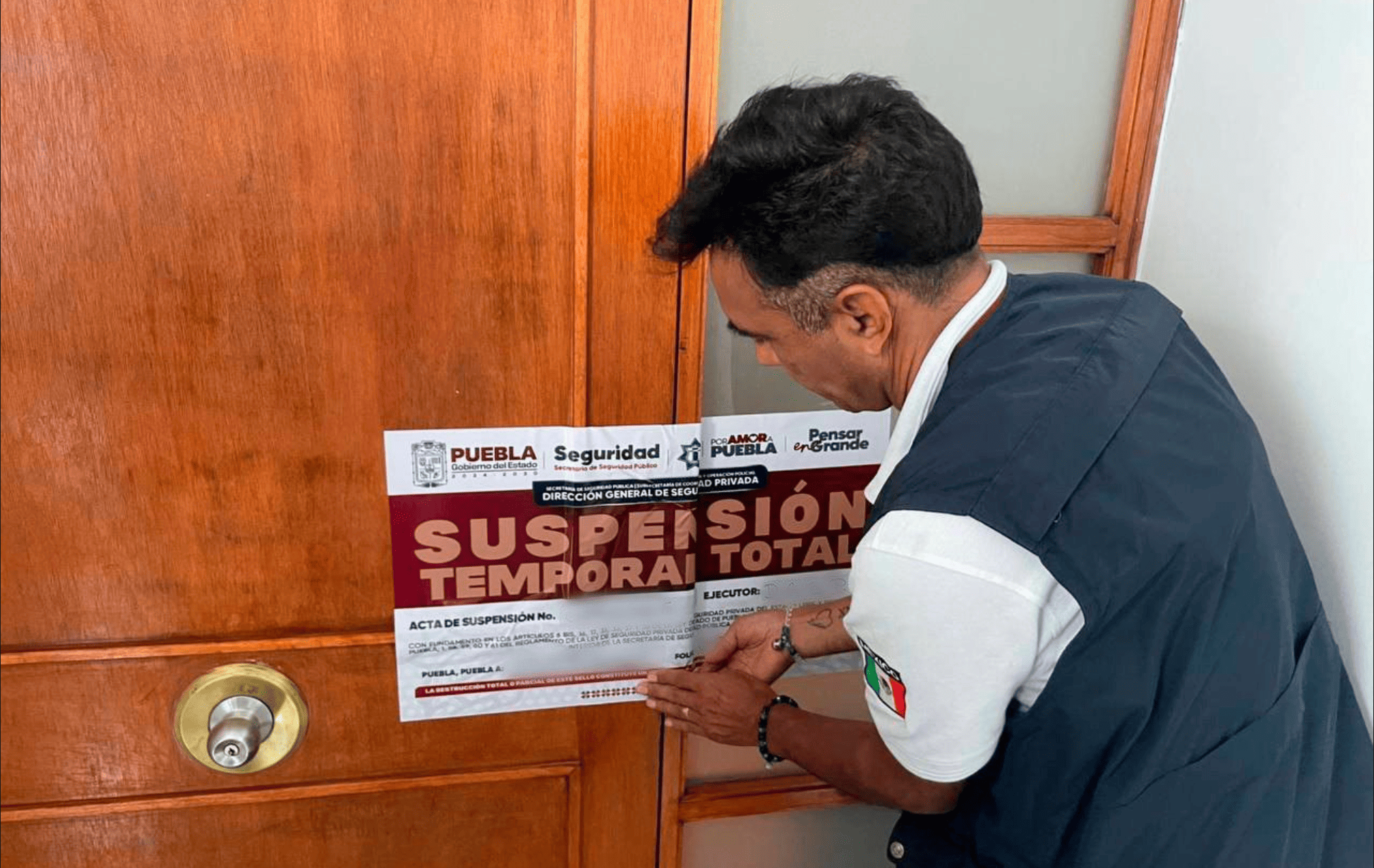 La medida busca prevenir actividades irregulares, proteger a la ciudadanía de posibles riesgos e impedir que esta empresa continúe brindando servicios de seguridad privada en Puebla.