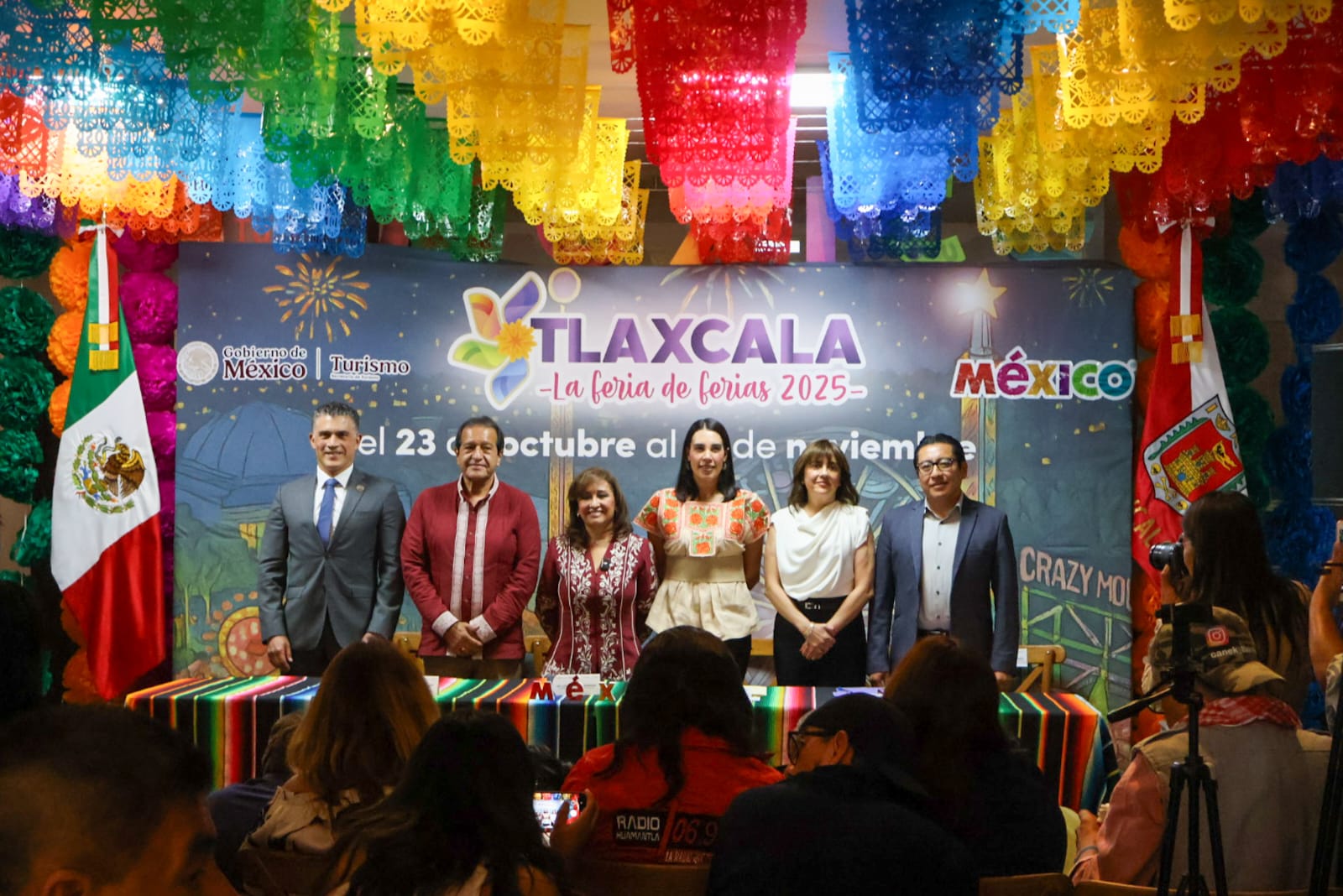 Tlaxcala, Tlax.- La gobernadora Lorena Cuéllar Cisneros, en compañía de la secretaria de Turismo Federal, Josefina Rodríguez Zamora; y el secretario de turismo estatal, Fabricio Mena, presentaron oficialmente la Feria de Tlaxcala 2025 “La Feria de Ferias”, que este año conmemora su 62 aniversario.