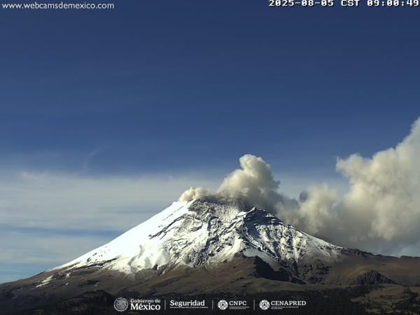 Puebla, Pue.- En las últimas 24 horas en el volcán Popocatépetl se detectaron 22 exhalaciones de baja intensidad acompañadas de vapor de agua, otros gases volcánicos y ocasionalmente ligeras cantidades de ceniza. Adicionalmente, se registraron 367 minutos de segmentos de tremor de baja amplitud, de los cuales 276 minutos corresponden a alta frecuencia y 91 minutos a tremor armónico.