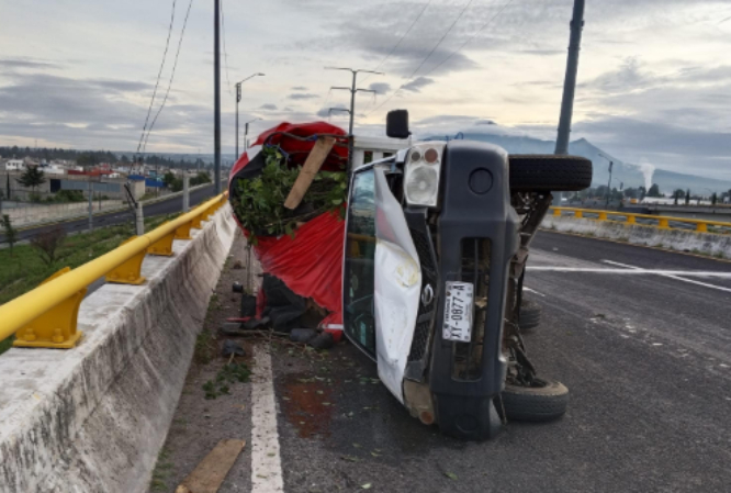 El hecho se presentó alrededor de las 06:30 am, cuando el conductor de una camioneta que transportaba árboles frutales, la cual se dirigía a Atlixco, y se le cruzó un auto. Al intentar esquivar, volcó sobre carril de baja quedando la mercancía completamente tirada sobre la vialidad sin que se reportaran personas lesionadas, sólo daños materiales en unidad.
