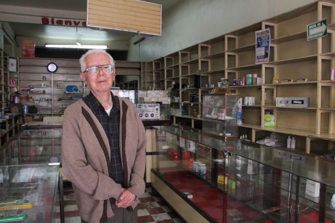Previo a su cierre definitivo, el señor Estrada ha ofrecido no solo los productos sino también el mobiliario que ha formado parte de la farmacia desde hace décadas.