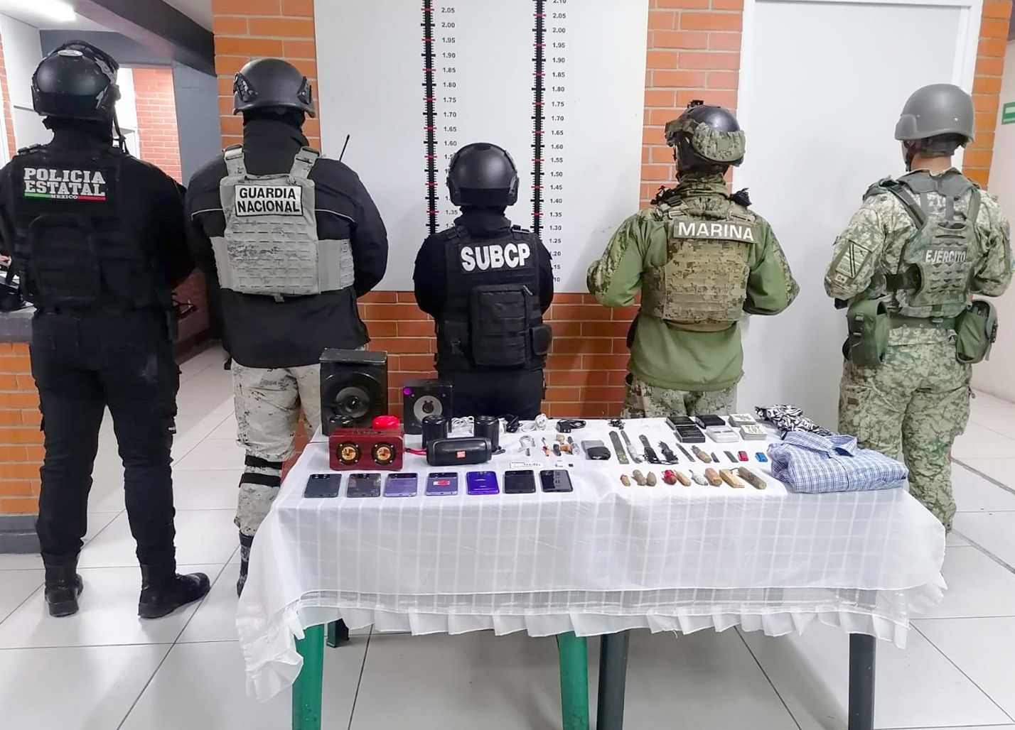 En el centro penitenciario de Tepexi, donde se contó con apoyo de la Secretaría de Marina (SEMAR), Secretaría de la Defensa Nacional (DEFENSA) y Guardia Nacional (GN), policías custodios aseguraron 25 objetos punzocortantes, ocho bocinas, siete teléfonos celulares, accesorios telefónicos, prendas de vestir, recipientes para el consumo de sustancias ilícitas y posible marihuana.