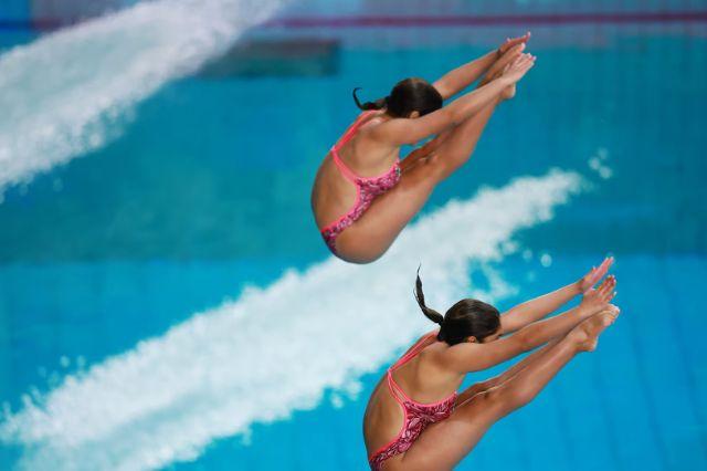 A finales de julio, las gemelas también se llevaron la medalla de bronce en el Mundial de Deportes Acuáticos en Singapur, con una puntuación de 294.36 puntos, detrás de las duplas de China y Gran Bretaña, ambas con experiencia olímpica.