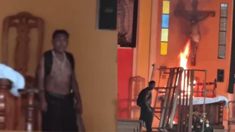 En redes sociales circularon imágenes donde se puede ver a este individuo quemando estatuas religiosas y el altar principal del templo, lo que generó mucha preocupación, miedo y asombro entre quienes estaban en la zona, con varias personas alteradas asegurando que se trataba de una persona poseída o alguien satánico.