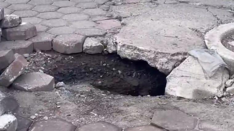 #Video || Tras las lluvias intensas que se han registrado en la región, vecinos de la calle Tlahuicole se percataron el levantamiento del adoquín que ha dejado un socavón de tamaño considerable.