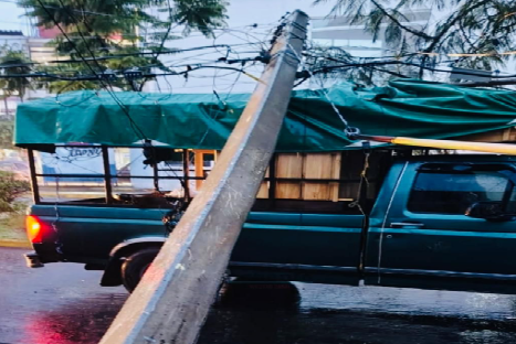 El episodio de este martes tuvo su momento más dramático en el bulevar Ferrocarriles y esquina con la 17 oriente, en los alrededores del centro de Atlixco, donde un poste de alta tensión de la Comisión Federal de Electricidad (CFE) cedió ante la humedad y cayó directamente sobre una camioneta en circulación.