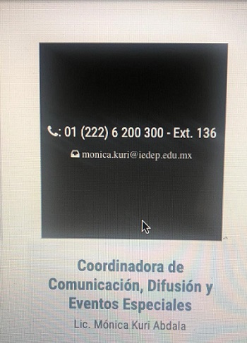 Con la novedad que este día desapareció del directorio del Instituto de Educación Digital del Estado de Puebla (IEDEP) Mónica Kuri Abdala, quien llegó al organismo por el director general Pablo Alberto Aréchiga Fernández.