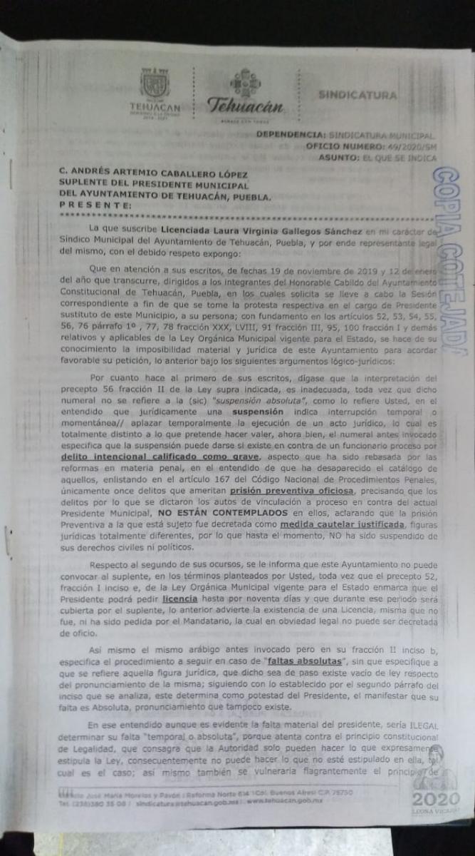 Si el Congreso del estado o la Comisión de Gobernación y Puntos Constitucionales que analiza o, mejor dicho, busca la manera de destituir a todo el Cabildo de Tehuacán, debería sancionar a un funcionario de ese ayuntamiento, la indicada sería la síndico Laura Virginia Gallegos Sánchez.
