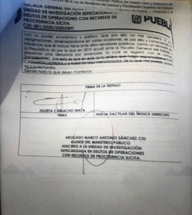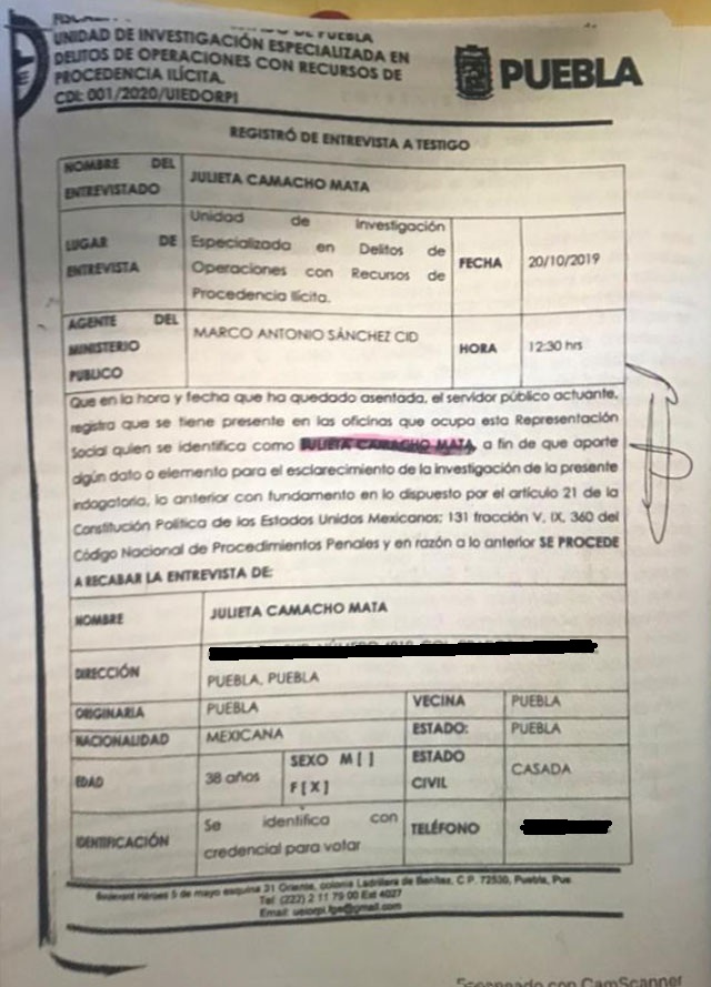 Quien la involucró como parte de esta red fue la regidora de Atlixco Julieta Camacho Mata en declaraciones ante la Unidad de Investigación Especializada en Delitos de Operaciones con Recursos de Procedencia Ilícita de la Fiscalía General de Justicia (FGJ) del estado.