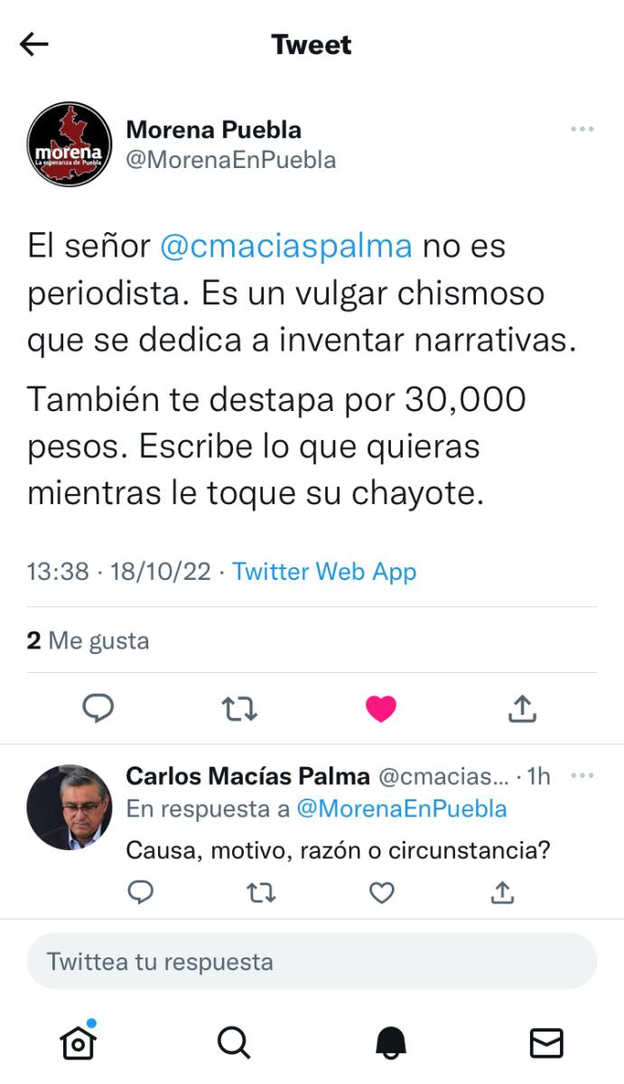 Que si soy pseudo-periodista, eso lo definirán los lectores. Me importa poco lo que piensen en MORENA Puebla.