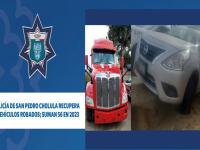En San Pedro Cholula recuperan dos vehículos robados; suman 56 este año Municipios PueblaDomingo, Diciembre 17, 2023 - 21:00A través de una denuncia anónima, alertaron sobre la presencia de un tractocamión que pretendían desarmarLeer más