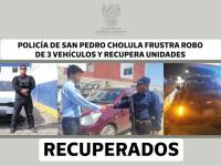 Durante la inspección, los policías de San Pedro Cholula encontraron un arma de fuego calibre 38 y que la unidad en la que viajaban contaba con reporte de robo.