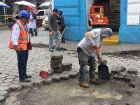 Testigos del momento del aguacero detallaron que varios automóviles particulares literalmente se quedaron atrapados entre los adoquines fuera de su lugar