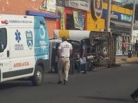 Remolque de Coppel se voltea en bulevar de Atlixco Lena VelázquezViernes, Abril 26, 2019 - 10:40Los empleados, entre ellos el chofer, sufrieron lesiones no graves, pero se requirió de atención médica de la ambulancia del departamento de bomberos.Leer más