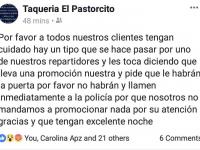Cadena de tacos advierte de falsos repartidores que intentan robar Lena VelázquezMiércoles, Marzo 13, 2019 - 14:29Se hacen pasar por trabajadores e intentan entrar a los domicilios particulares a robar bajo el argumento de entregar promocionesLeer más