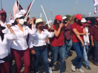 La morenista criticó la presunta compra de votos de sus adversarios y fue respalda por deportista en el cierre de campaña que realizó en la Reserva Quetzalcóatl