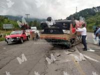 Por exceso de velocidad vuelca combi en Huauchinango; hay 3 heridos Franco FloresViernes, Julio 9, 2021 - 14:07Tras salir de la unidad el conductor de la Unidad 07 se dio a la fuga dejando a su suerte a los pasajeros y a los heridosLeer más