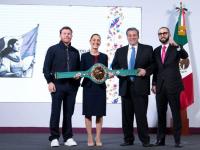 Canelo Álvarez visita a Claudia Sheinbaum en la mañanera Municipios PueblaViernes, Noviembre 29, 2024 - 11:58El púgil nacional le entregó un cinturón de campeona mundial y “guantes de la paz”Leer más
