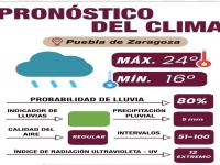 Condiciones del clima en Puebla para tomar previsiones Municipios PueblaSábado, Julio 19, 2025 - 12:09Se recomienda a la población tomar previsiones al salir y considerar posibles encharcamientos en zonas de riesgoLeer más