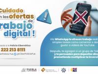 Detecta SSP Puebla fraudes por medio de empleos ofertados en redes MunicipiosViernes, Julio 14, 2023 - 10:52Ante algún caso de esta índole, la Policía Cibernética brinda asesoría a través del 22 22 13 81 11Leer más