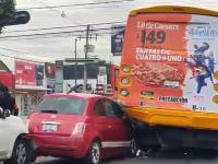 Los hechos ocurrieron con dirección hacia Bulevar Atlixco, cuando presuntamente un vehículo Fiat intentó ganarle el paso a la unidad del transporte público