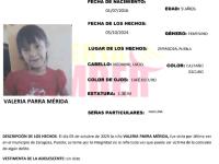 Sigue la búsqueda de la niña Valeria de 9 años; desapareció en Zaragoza Municipios PueblaJueves, Agosto 28, 2025 - 12:39Valeria tiene el cabello castaño oscuro, mediano y lacio, ojos café oscuro y una estatura aproximada de 1.30 metrosLeer más