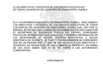 Ante esta situación alertó a través de un comunicado a directivos y docentes de todos los niveles educativos a no dejarse sorprender por llamadas telefónicas con fines de extorsión