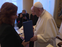 El papa entregó condecoración pontificia a Valentina Alazraki y Philip Pullella Municipios PueblaSábado, Noviembre 13, 2021 - 11:40En un hecho inédito con el que quiso rendir homenaje al periodismoLeer más